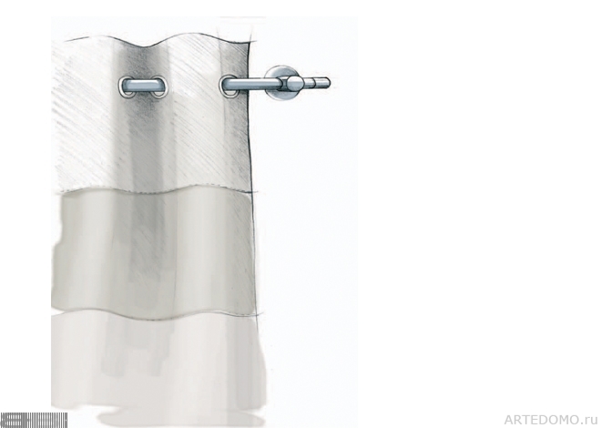 Штора состоит из трех горизонтальных полос тканей разной структуры и прозрачности. (Dralaine, Enduchine, Filaine, Toula)