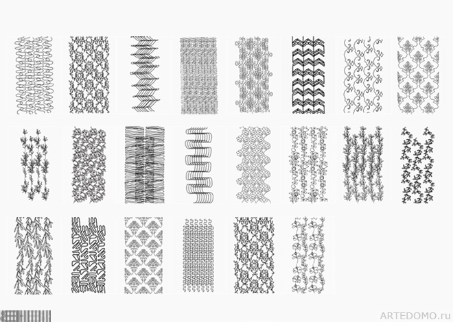 Коллекция рисунков для вышивки, где узор идет двумя полосами.
