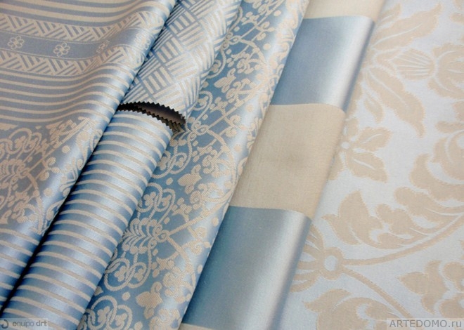 Шесть дизайнов отхватывают диапазон от классических дамасков до тканей в широкую и узкую атласную полоску на матовом полотняном фоне, от восточных вензелей до европейских квадратов. Коллекция BOLSOI идеальна для создания нарядных торжественных исторических интерьеров.