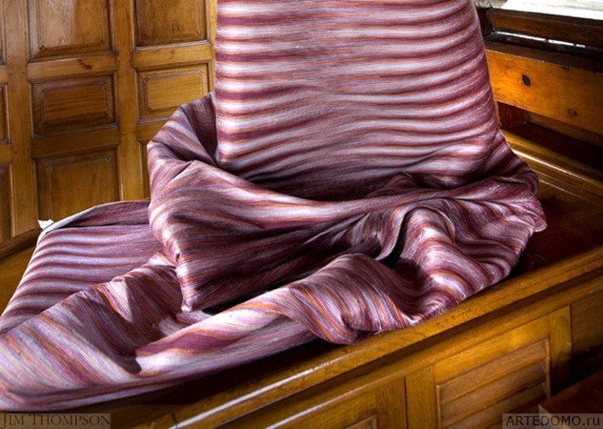 “Я никогда не видел на свете ничего более замечательного, чем храмы Ангкора, но я не знаю, как это передать словами», - писал Сомерсет Моэм. То же самое можно сказать о шестислойном шелке, излучающем красоту, которую невозможно описать на бумаге. Ручная намотка шелковых нитей и волнистый узор уточного иката придают этой яркой ткани королевский статус. Современная импровизация на тему древнего ремесла, естественные цвета и традиционные рисунки икат, поражают смелостью и размером узора. Джим Томпсон был бы очень доволен этой роскошной тканью.