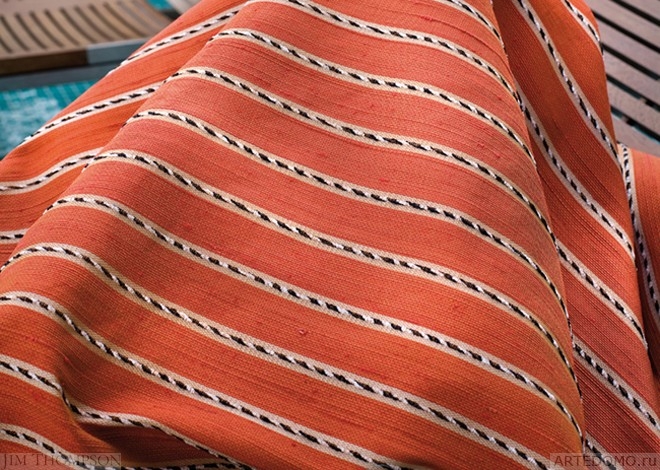 BURNISHED REEDS создана при помощи темно-белых нитей, простеганных поверх основного рисунка. Классическая полоса JIM THOMPSON получила новое прочтение. Колористическая гамма модели включает 20 (!) цветов, что почти до бесконечности расширяет диапазон ее использования.