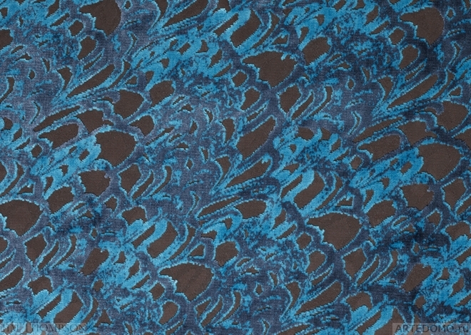 Роскошный, вдохновленный миром моды гламурный паттерн. Зелено-голубой и фиолетовый цвета подчеркивают драматический эффект этой ткани.