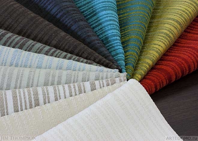 Созданная из сочетания хлопка и синели, эта коллекция представляет собой ряд преобразованных различными цветовыми комбинациями напоминающих срез древесины прямых и слегка изогнутых линий.