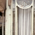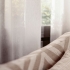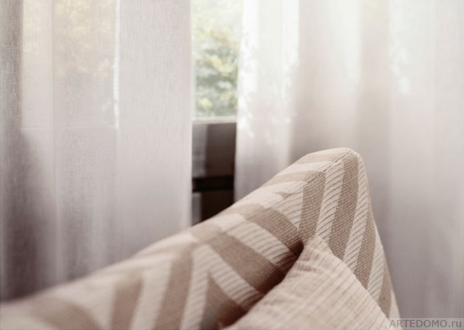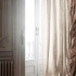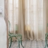 Льняная ткань с широкими полосами, гладкая текстура чередуется с сетчатой структурой.