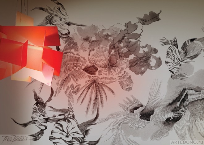 Компания TRES TINTAS заказала всемирно известным художникам варианты настенных панно. Пользуясь сайтом компании, каждый покупатель может адаптировать разработки профессионалов для своих конкретных интерьеров.