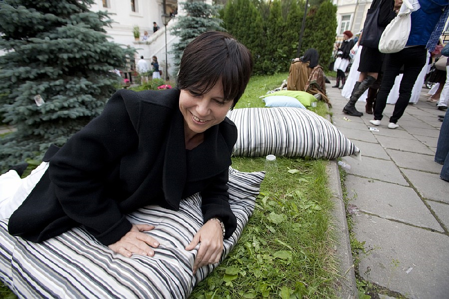 К юбилею школы компания ARTE DOMO подготовила подарок – коллекцию подушек для сидения на траве. Полосатые подушки, сшитые из тканей Equipo DRT (коллекция KYTIRA), живописно лежали на зеленом газоне во дворе школы и пользовались успехом у многочисленных гостей. Кратковременный дождь подтвердил их практичность: капли скользили по ткани как по тефлону.